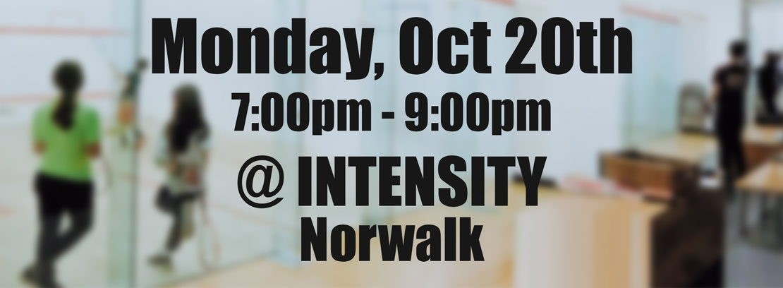 Friendly inter-club match from 7pm to 9pm at INTENSITY, Norwalk. All players MUST arrive by 7pm to keep us on schedule. Two teams of 8 players (3.5+ rating) will be matched up to play similarly rated opponents. $20 match fee, pizza included.